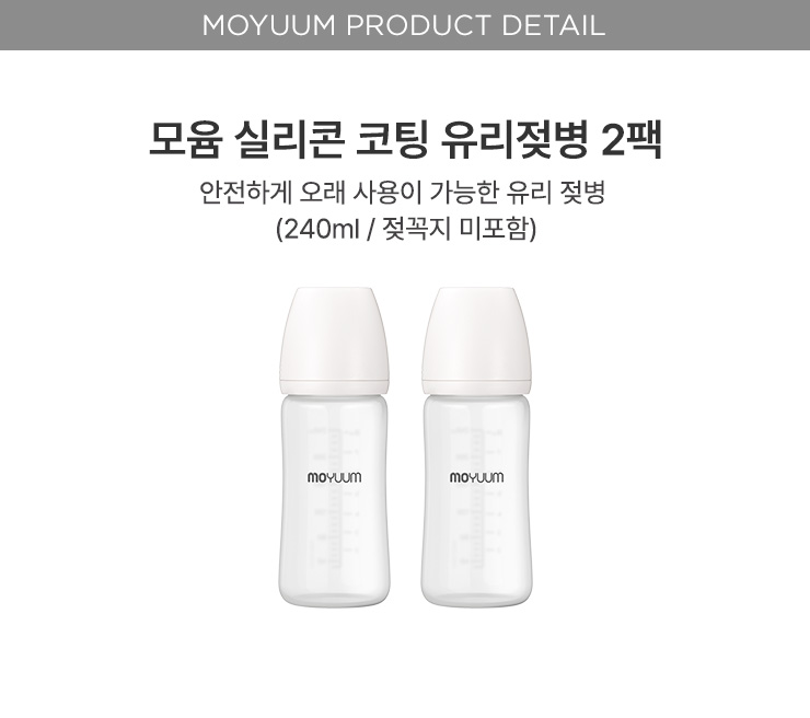 실리콘 코팅 노꼭지 유리 젖병 240ml