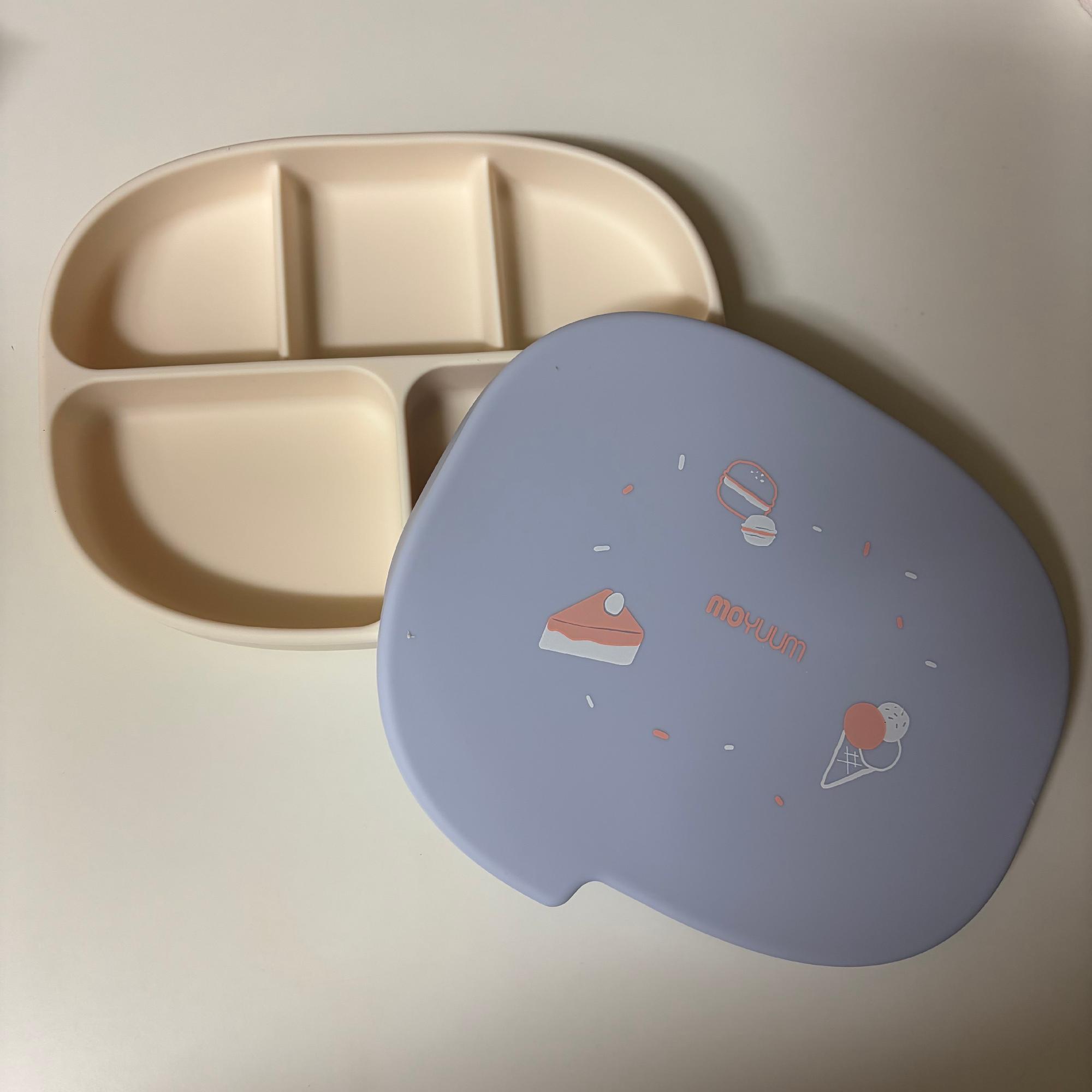 실리콘 초강력 5구 흡착식판+간식접시 (뚜껑겸용) 아기 이유식식판