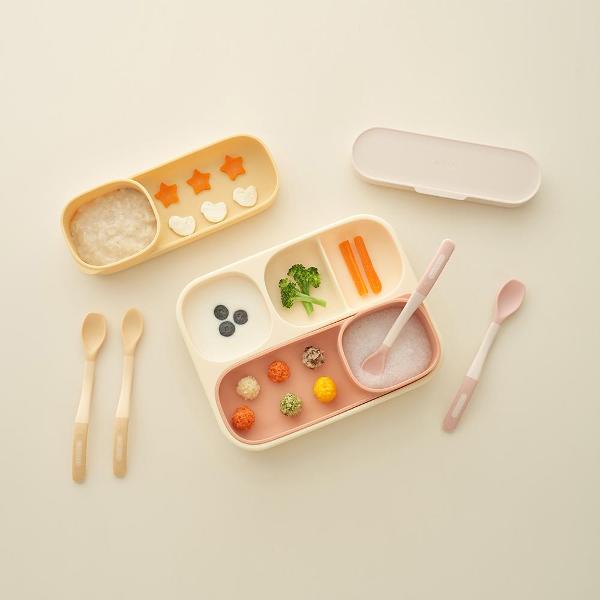자기주도 이유식 3종 세트(4구 흡착식판+디바이더 플레이트+하트 스푼포크)