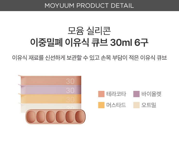 이중밀폐 실리콘 토핑 이유식 큐브 30ml 6구 2개세트 - 컬러선택