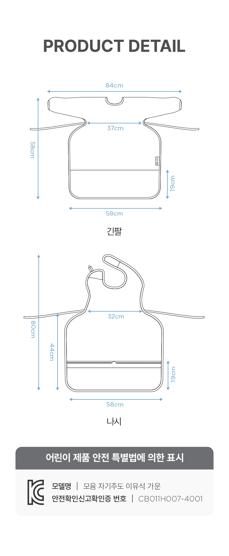 자기주도 이유식 가운 식탁일체형 2종세트(나시형+긴팔형)