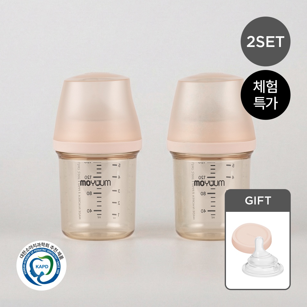 모브아 PPSU 와이드플러스 베이직 젖병 160ml+250ml 2종세트+내추럴핏 젖꼭지(2ea)