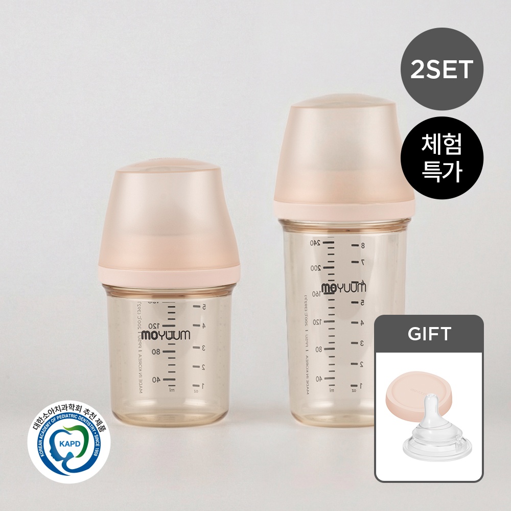 모브아 PPSU 와이드플러스 베이직 젖병 250ml 트윈팩+내추럴핏 젖꼭지(2ea)