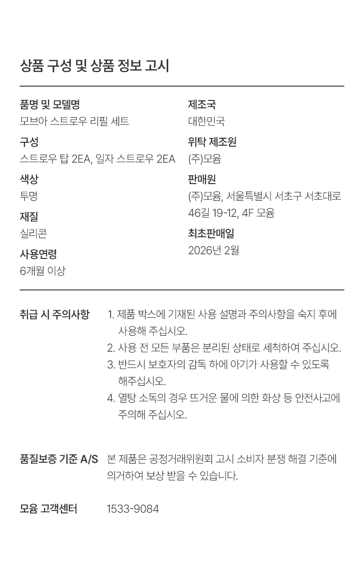 모브아 트라이탄 원터치 빨대컵 디어포니에디션 250ml+스트로우 리필 세트