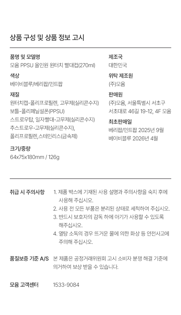 돔형 PPSU 원터치 빨대컵 170ml+270ml 2종세트 - 디자인 선택