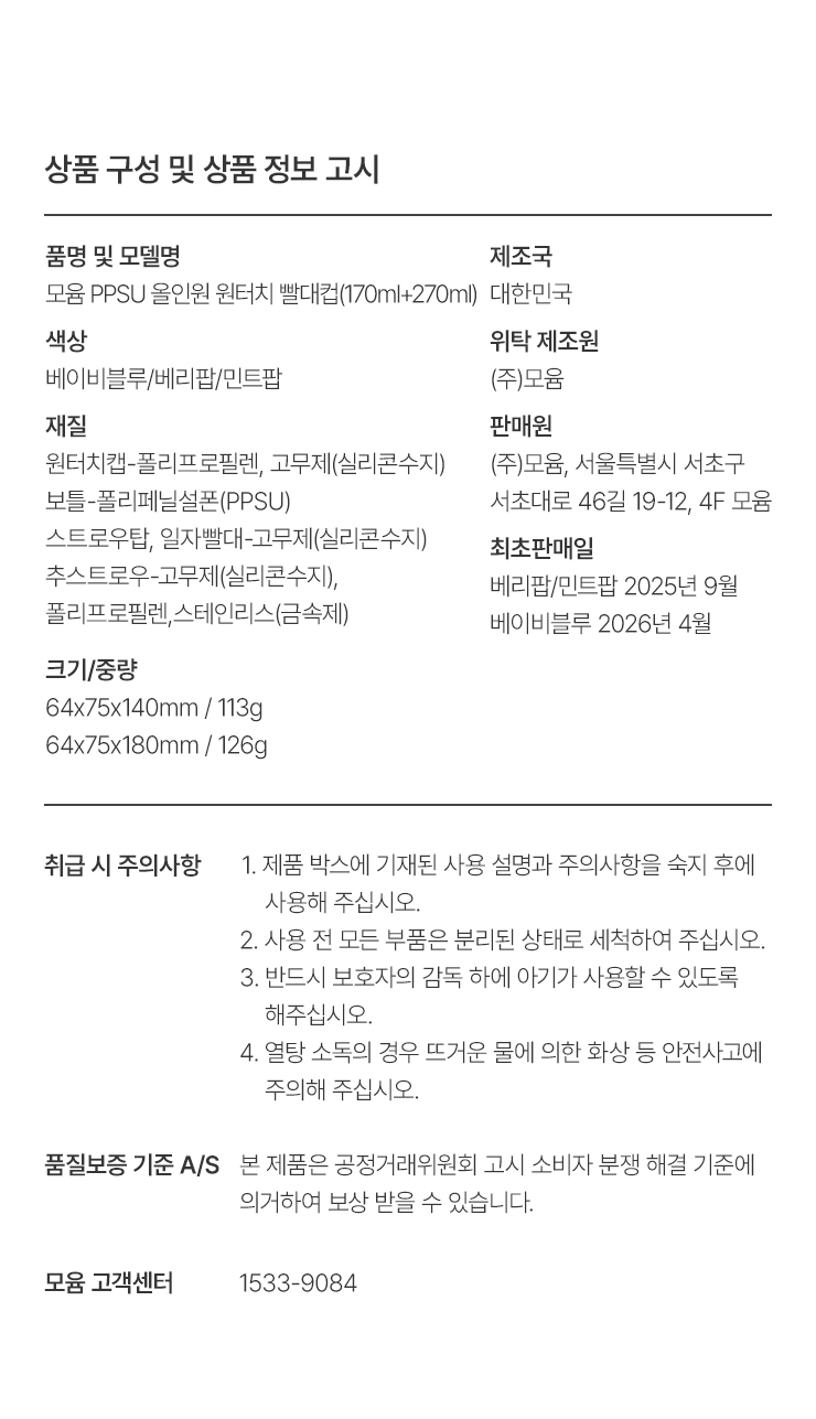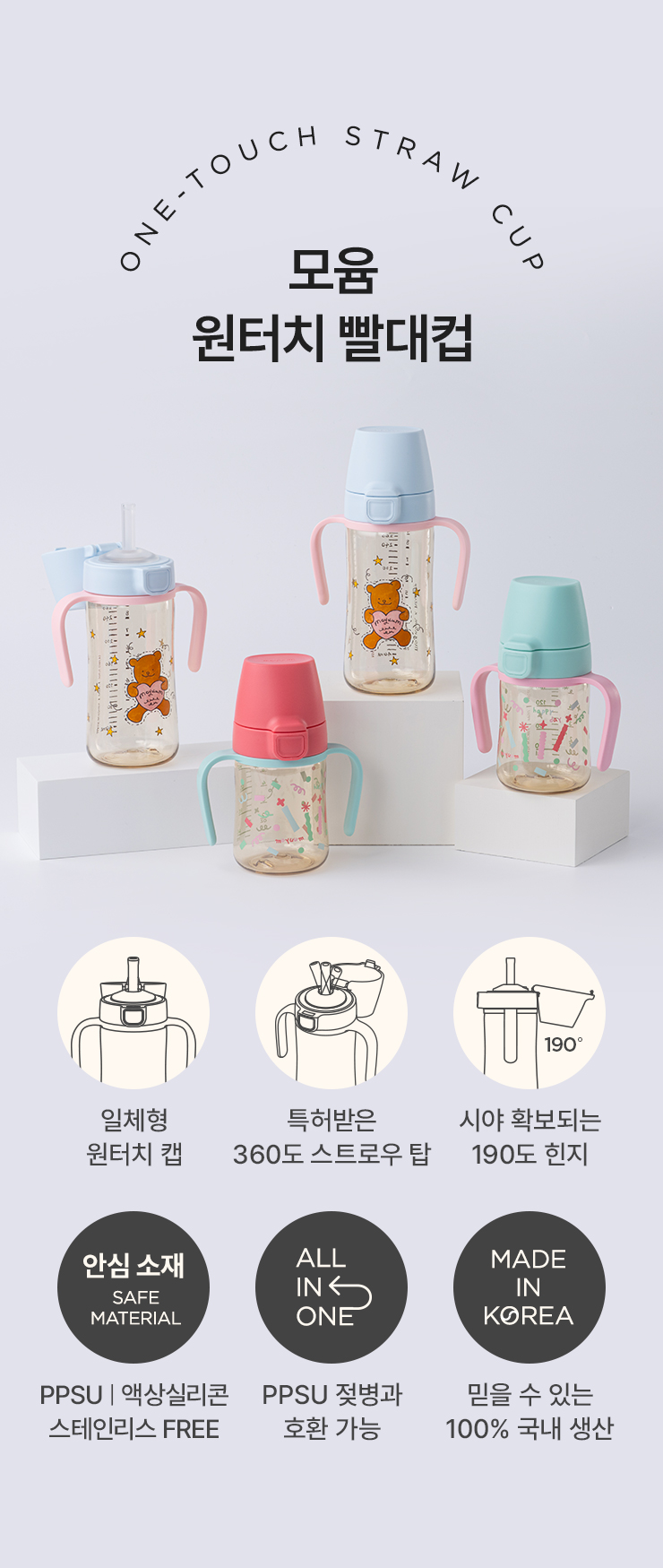 돔형 PPSU 원터치 빨대컵 270ml - 디자인 선택