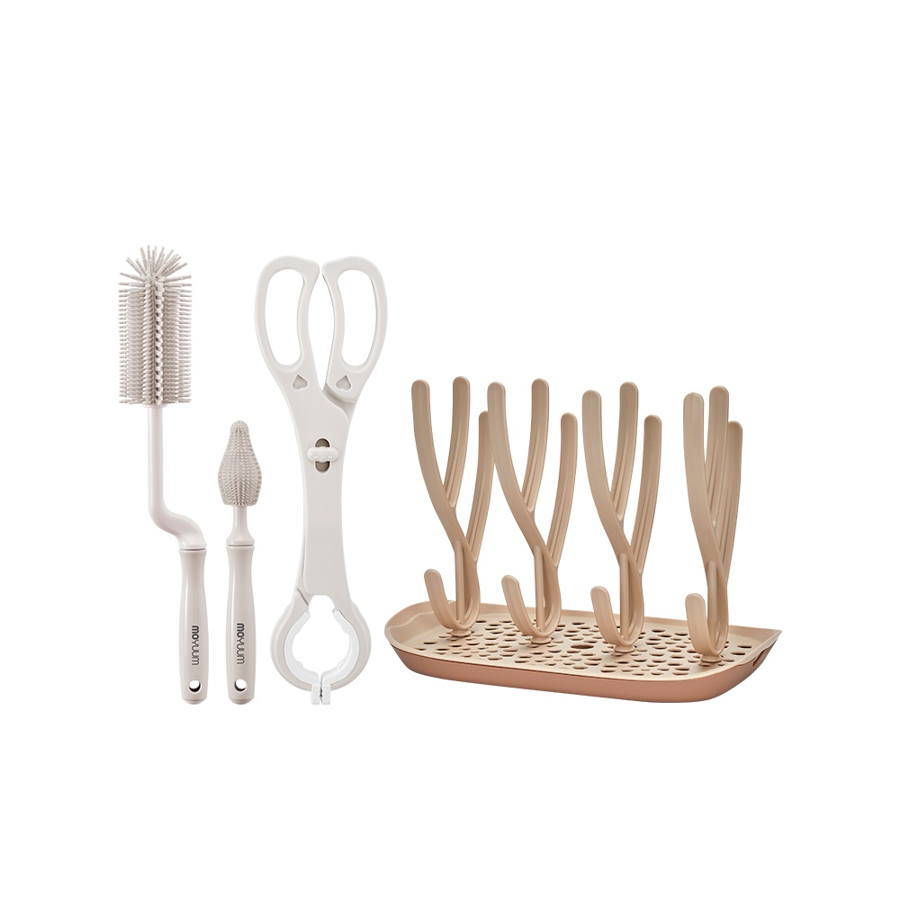 젖병 세척 풀세트(스탠딩 젖병 건조대+롱커브 세척솔 6P+소독집게)