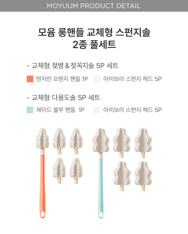 롱핸들 교체형 스펀지 젖병 젖꼭지솔 세트