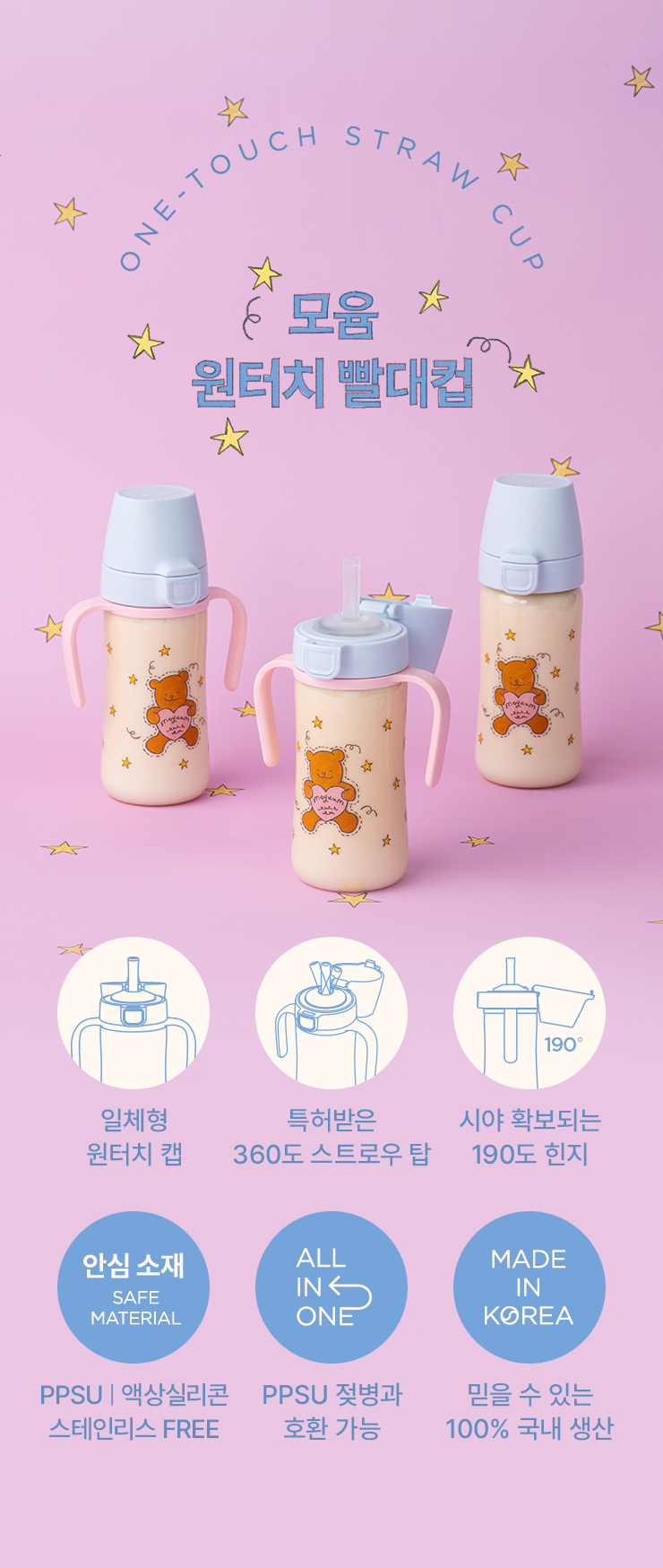 돔형 PPSU 원터치 빨대컵 270ml - 디자인 선택