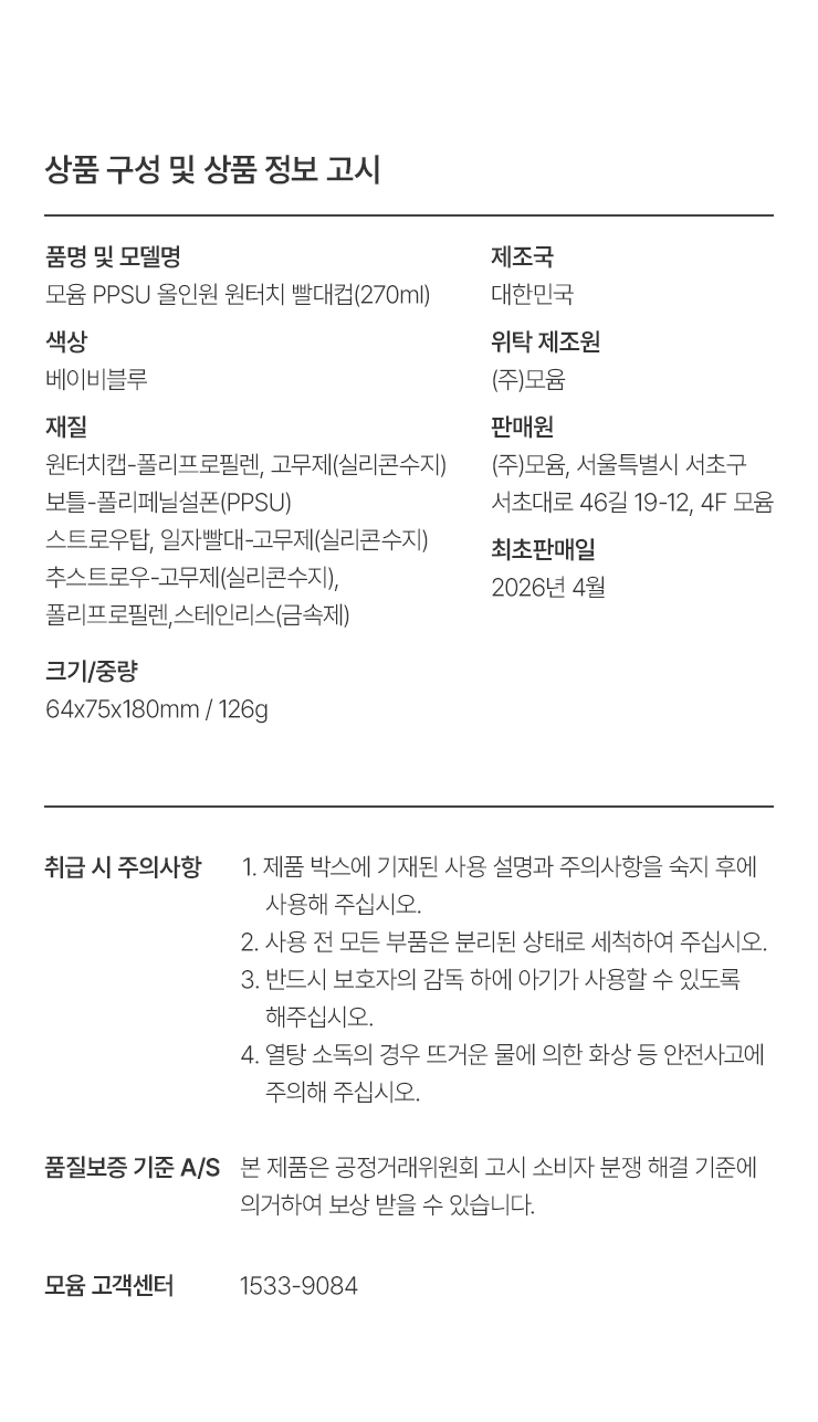 돔형 PPSU 원터치 빨대컵 170ml+270ml 2종세트 - 디자인 선택